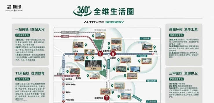 医疗——有广州市妇女儿童医疗中心,南方医院增城分院、中新镇中心卫生院等三甲医院,护航业主健康;