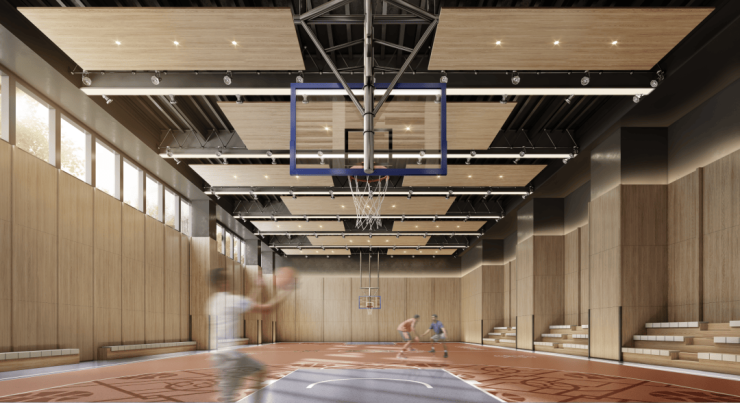 3层,是体育会所,规划有篮球场、羽毛球场、健身房、泳池等运动休闲空间。