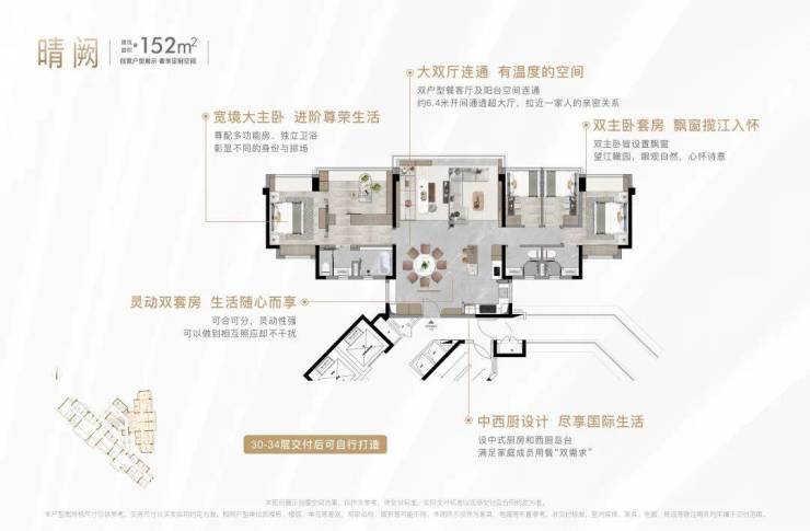 户型:建面约76-152 ㎡三至四房宽景臻品