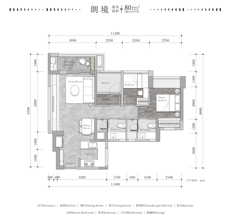 建面约80㎡ 2房2厅2卫+1灵动空间: