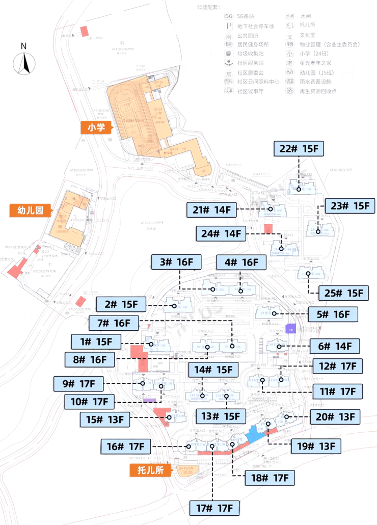 北侧地块分布5栋住宅,总共25栋住宅。