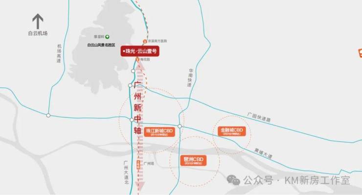 位于广州中轴线,距珠江新城、天河北CBD仅数公里,兼顾繁华与静谧。