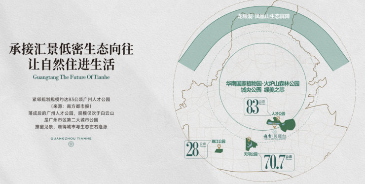 紧邻规划规模约达83公顷广州人才公园,落成后的广州人才公园,规模仅次于白云山,是广州市区第二大城市公园,推窗见景。2.1低容积率,天河再难有的低密净地