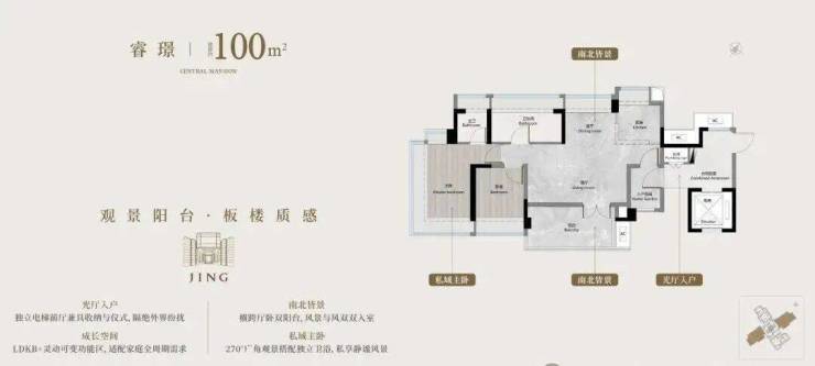 主卧270°观景,独立主卫,起居间方正。