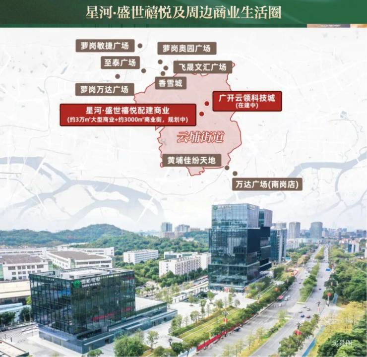 沿着一条开创大道,周边5公里范围内汇集萝岗万达、星际云汇、香雪城(在建)等约300万方醇熟商业。