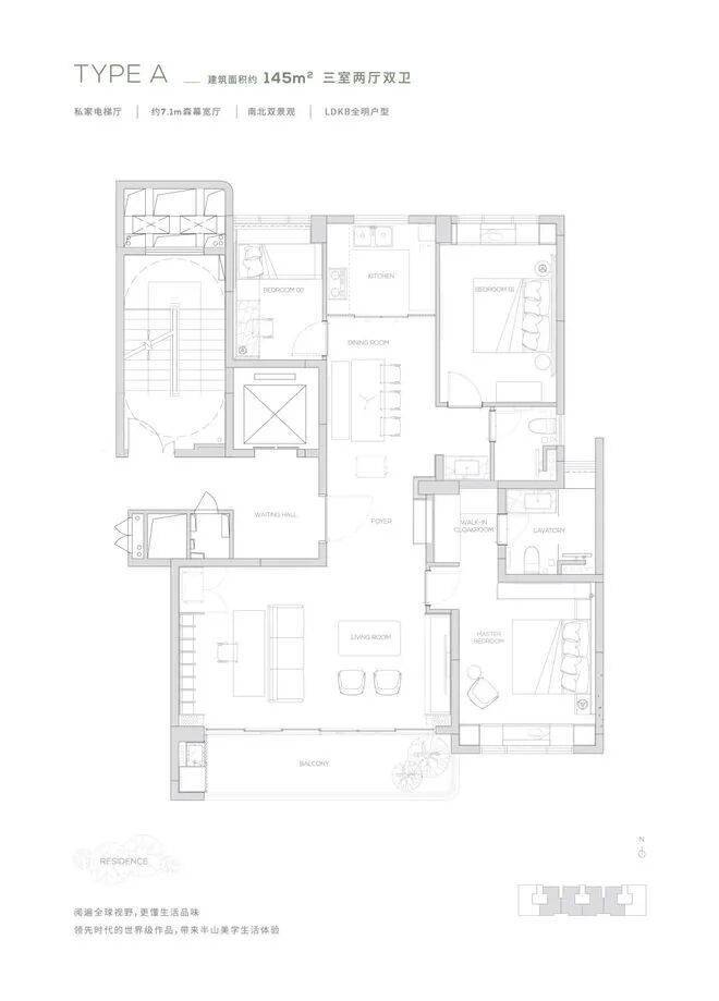 观景双阳台-高定双套间-私家电梯厅-双洄游动线