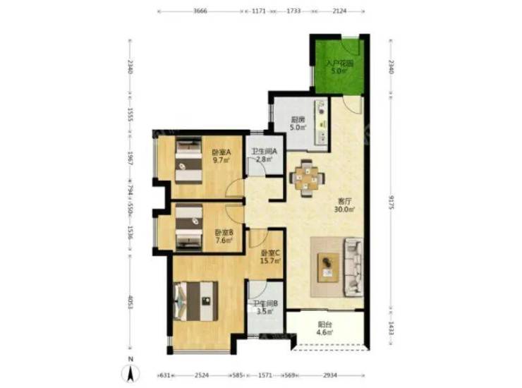 102.31㎡ 区府板块楼栋安静,品质南向三房!