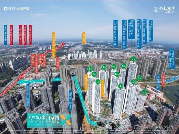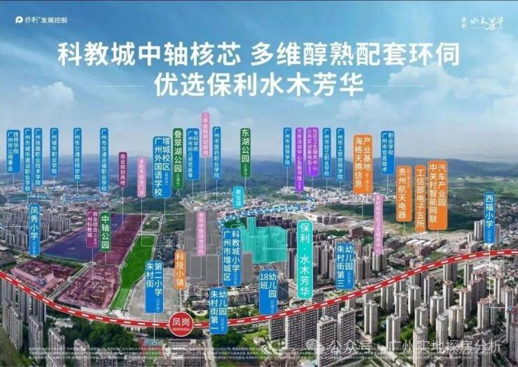 项目楼下就是一所公立18班幼儿园。项目自建的公立24班科教城小学,于2023年9月份开学,完全可以做到目送式的教育。对口的中学则是朱村中学,并且现在朱村中学已被纳入增城广附教育集团。