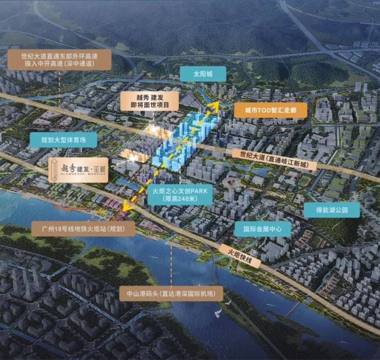 越秀·建发玺樾是由越秀和建发双国企联手打造的高端住宅,是公认火炬区的尖货红盘。越秀建发玺樾最大亮点绝对是区域优势。项目是距离南中城际火炬站最近的项目,直接线距离仅约500米,而且与火炬中心地标群仅一墙之隔。