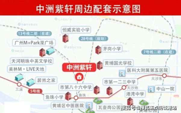 中洲紫轩位于广州市中山大道东,距离地铁5号线鱼珠站约400米。作为广州第二CBD鱼珠核心位置的重要组成部分,它不仅坐拥黄埔茅岗板块的地理优势,更是鱼珠临港经济区和广州国际金融城交汇的关键节点。凭借其卓越的地理位置和便捷的交通网络,中洲紫轩成为了广州城市发展的新焦点。