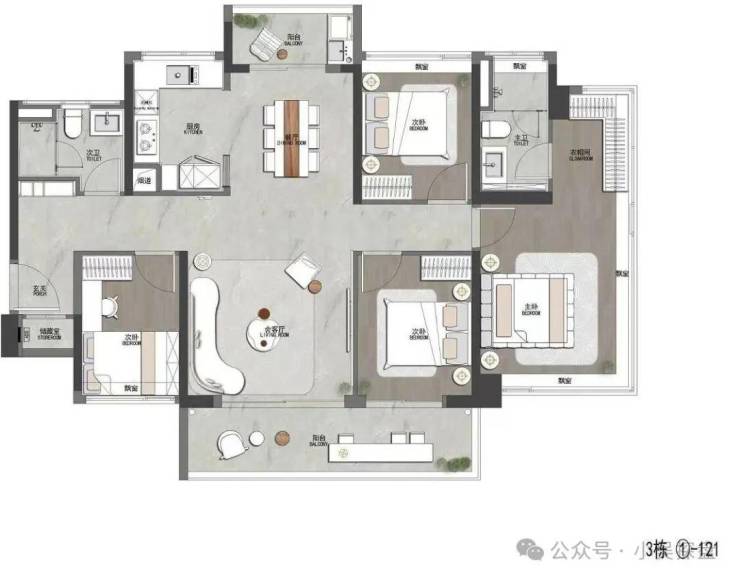 户型设计上,项目主打建面约84-130㎡三至四房,精准覆盖刚需与改善两大核心客群,户型设计采用超新规标准,使用率超125%,部分户型甚至更高,这一数据在广州核心区的高层住宅中表现突出。