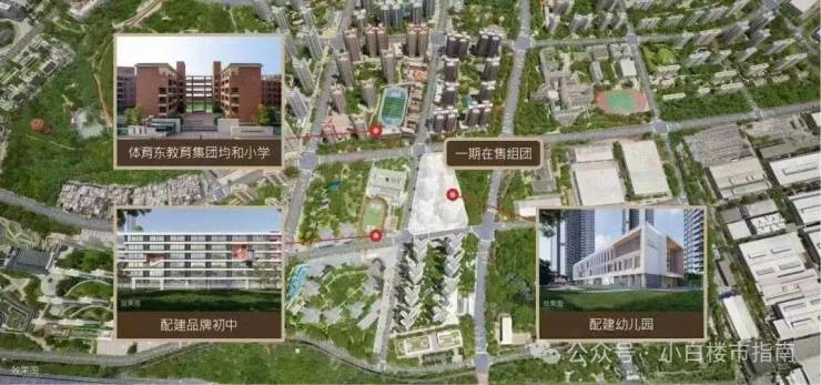 项目首开地块旁就有配建一所36班初中和一所9班公立幼儿园,目前都已经封顶。虽然现在初中还尚未确定具体是什么学校,但是有吹风会引入执信办学。项目目前已经确定业主子女可按就近入读政策,满足人户一致即可入读体育东教育集团均和小学。初中的话目前配建的还没开学,同时也可以参与摇号执信中学
