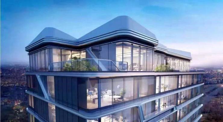 商业大平层有 322 平四房两厅五卫和 403 平四房两厅五卫两种户型,层高约 3.5 米,整体格局合理,动区空间充足。