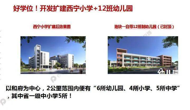 项目两公里范围内便有“4所幼儿园、4所小学、5所中学”,其中省一级中小学5所。