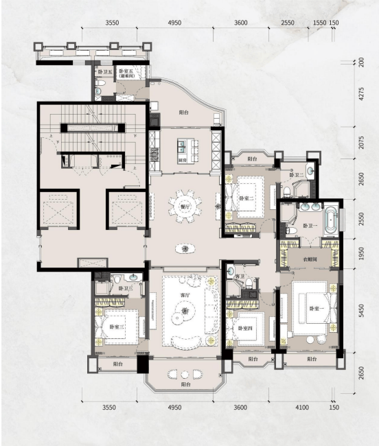 约 263 ㎡五房三厅五卫 极目江景奢阔空间