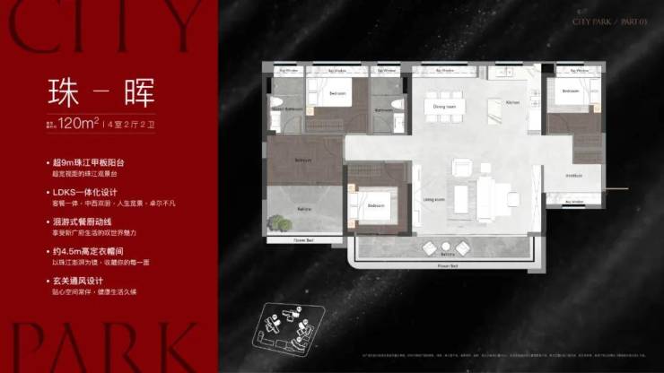 享有稀缺的南向江景资源,大部分户型可直望珠江美景。