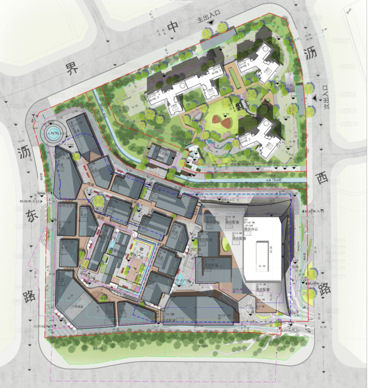 S2地块为住宅,S3地块包括水系和公园绿地,将结合整体的景观设计打造滨水景观廊道。
