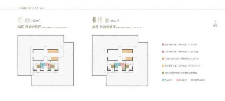 38-44F,是企业会客厅,约338-479㎡,45-47F,约1427-1596㎡(整层)