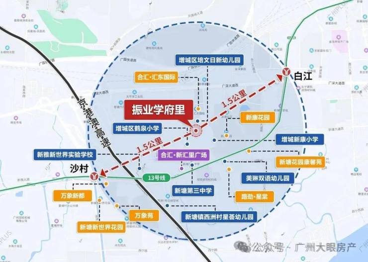 项目600米范围内就分布有新康小学、鹤泉小学、新塘三中以及多所幼儿园。