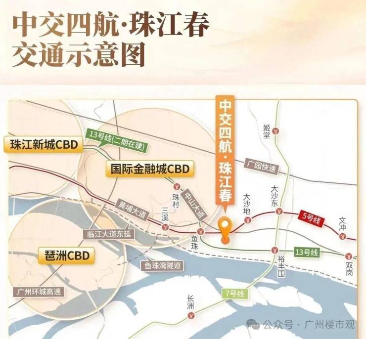 5号线+13号线二期两条高含金量的地铁以及2条超级城市主干道中山大道+黄埔大道,一线直连珠江新城、金融城。