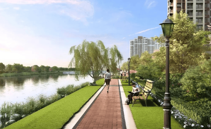 滨水公园:沿河打造约1.6km滨水漫步公园(在建中)、体育运动公园等自然公共空间,营造运动、娱乐、休闲等松弛感生活聚场。