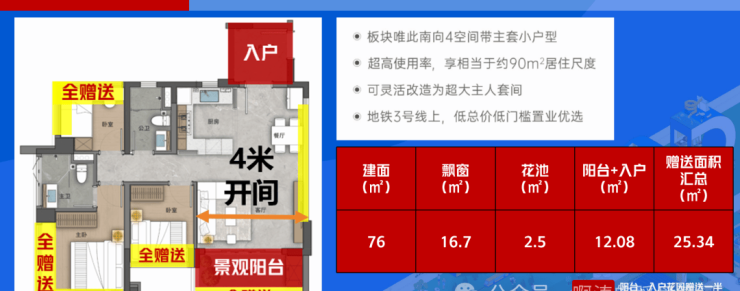 阳台、飘窗、花池N处赠送空间,所有户型阳台率20%,这个数值放到全广州,都少有对标者。加上官方严控空间赠送率,阳台率控制20%,恐怕也无后来者能超越。