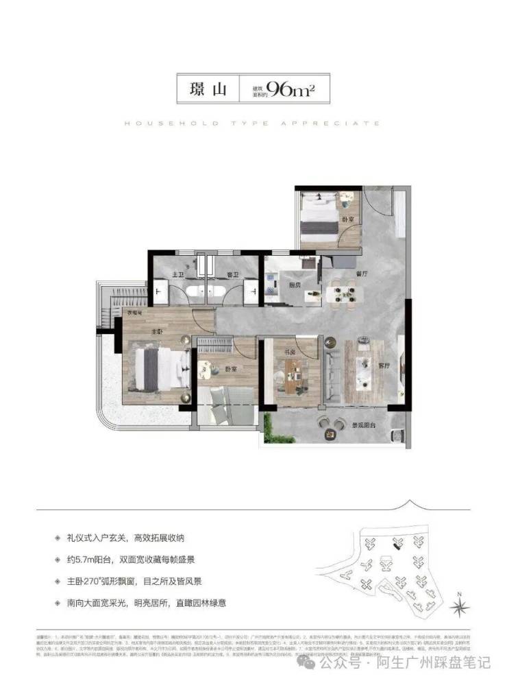 4. 户型实用,得房率高:主打80-125㎡三至五房,使用率可达110%,部分户型南北对流、全南向设计,适配改善家庭空间需求。80平都能做到南向三房两卫。