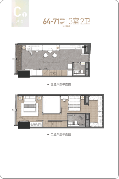 建面约64-80㎡创享3房