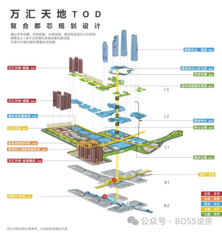 根据设计,天空花麓连接双地铁交汇,无风雨通达万汇天地娱乐、居住、商业、写字楼、景观公园、教育医疗等多元空间,体验全新都市立体生活