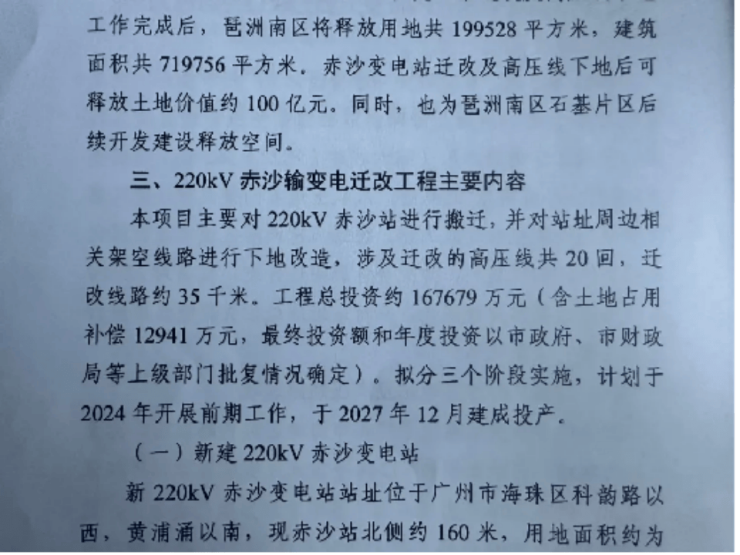 高压线、变电站迁改问题,明确今年就会开展前期工作,2026年完成拆除。