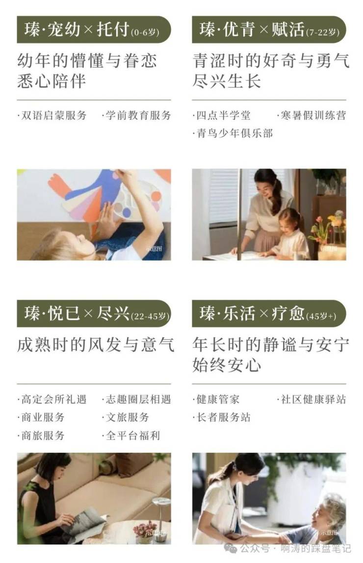 ◎社群价值延伸:通过高端社交、健康活动与亲子成长三大板块,打造全龄化品质社群。涵盖品鉴沙龙、健身课程、双语启蒙等丰富内容,满足业主社交、运动及家庭成长需求