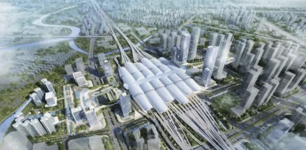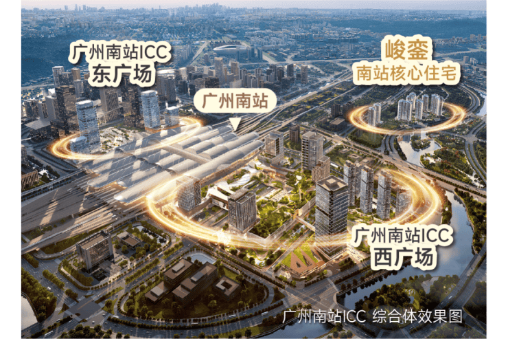 项目位于广州南站东广场侧,4高铁+4城际+4地铁的配置,堪称华南轨道交通“天花板”: