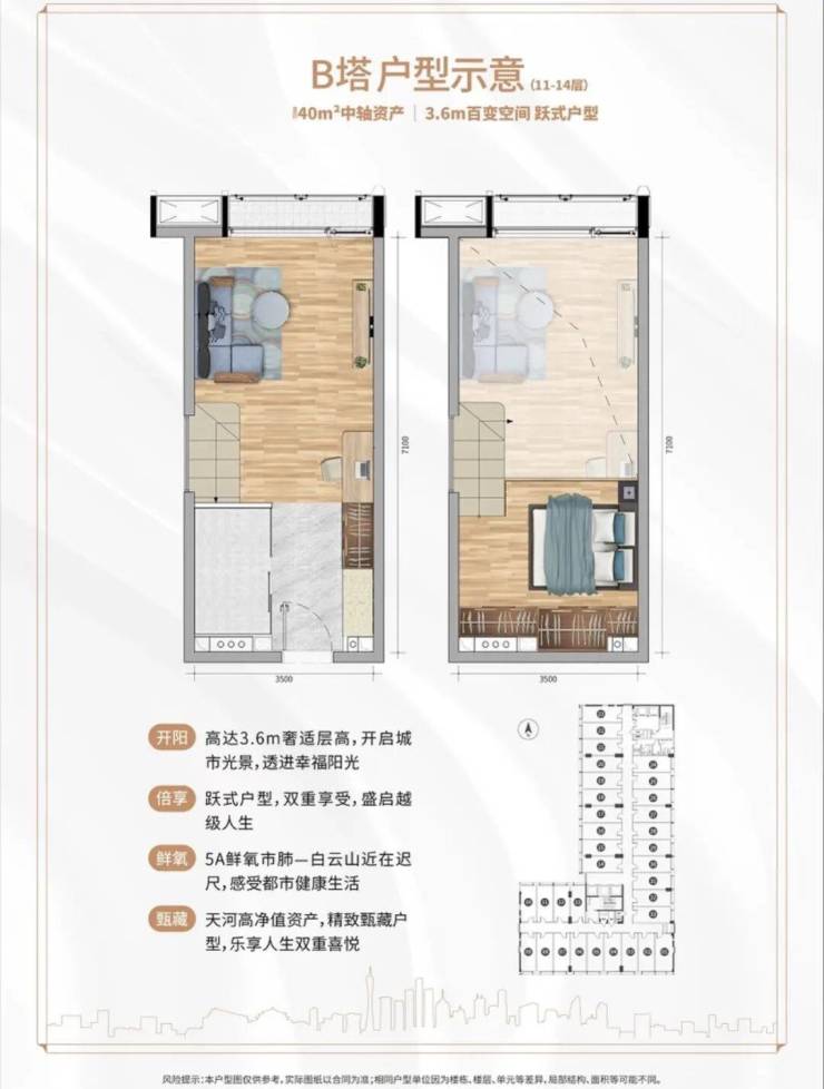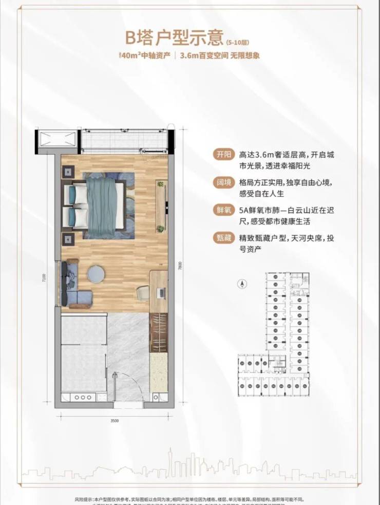 主推31-57㎡小户型(主力40㎡),单价约2万+/㎡,总价约60万起,仅为周边住宅价格的1/5(二手均价6-8万/㎡)。