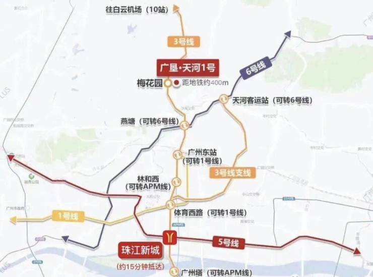 雄踞天河CBD中轴,距地铁3号线梅花园站仅400米,5站直达珠江新城(约15分钟),2站至广州东站。