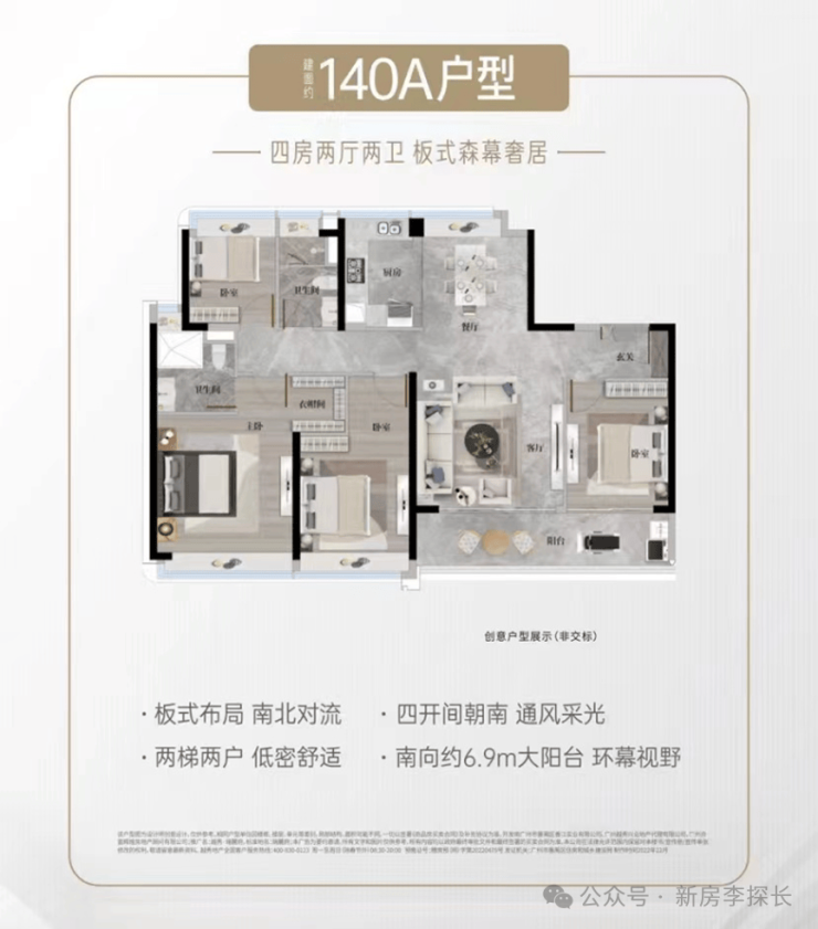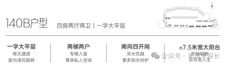 建面约140m²板式大四房|1字大平层南北通透|2梯2户专梯入户