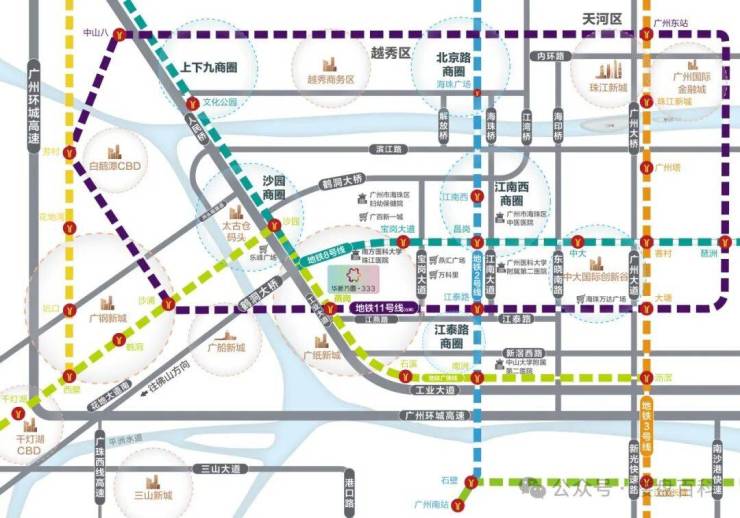 项目位于广州市海珠区工业大道- 工业大道中333号,地铁广佛线与广州地铁11号线交汇站燕岗站D出口上盖;规划海珠创新湾片区广纸新城的核心区域,是广州智能应用中心与广佛体验消费商圈,未来将打造粤港澳大湾区智能中心、珠三角西岸高端配套服务基地、广佛高品质休闲生活港湾和广州文化产业基地。一、华新·333官方统一认证热线(四端直连,开发商直售)