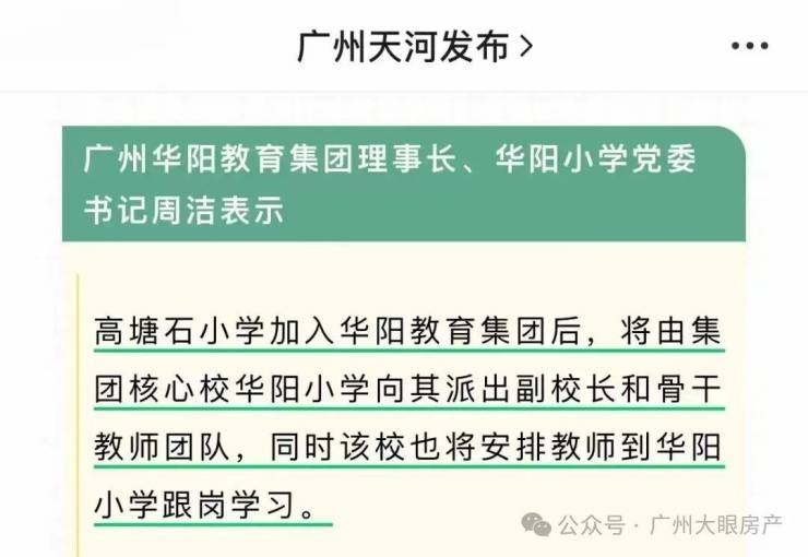 天河政府官微已在去年官宣该校加入华阳教育集团,并由原华阳小学向其派出副校长和骨干教师团队进驻,相当于拥有纯净“华阳系”血统。