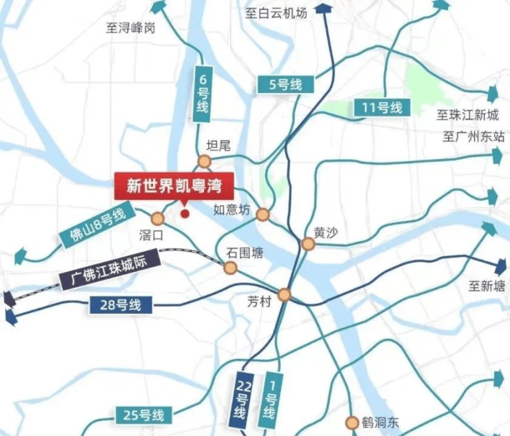另外未来广州4条地铁交汇落成白鹅潭站分别是:1、11、28、22号线将会联通佛山、深圳、东莞等弯区城市。