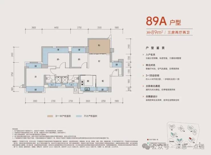 89㎡的3房2卫,折后总价270-305万/套,折后单价2.98-3.41万/㎡。