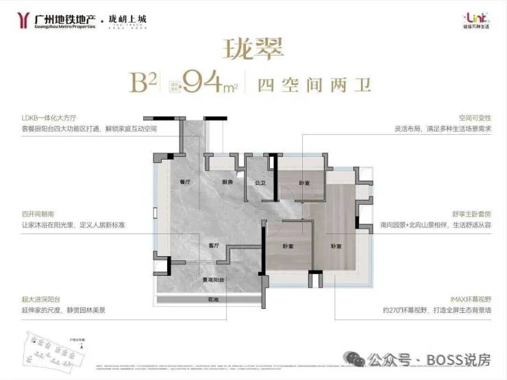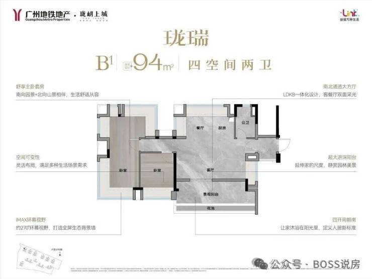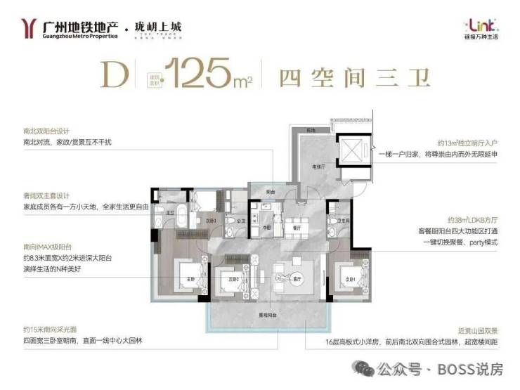 南北通透大方厅:LDKB一体化设计,客餐厅双面采光