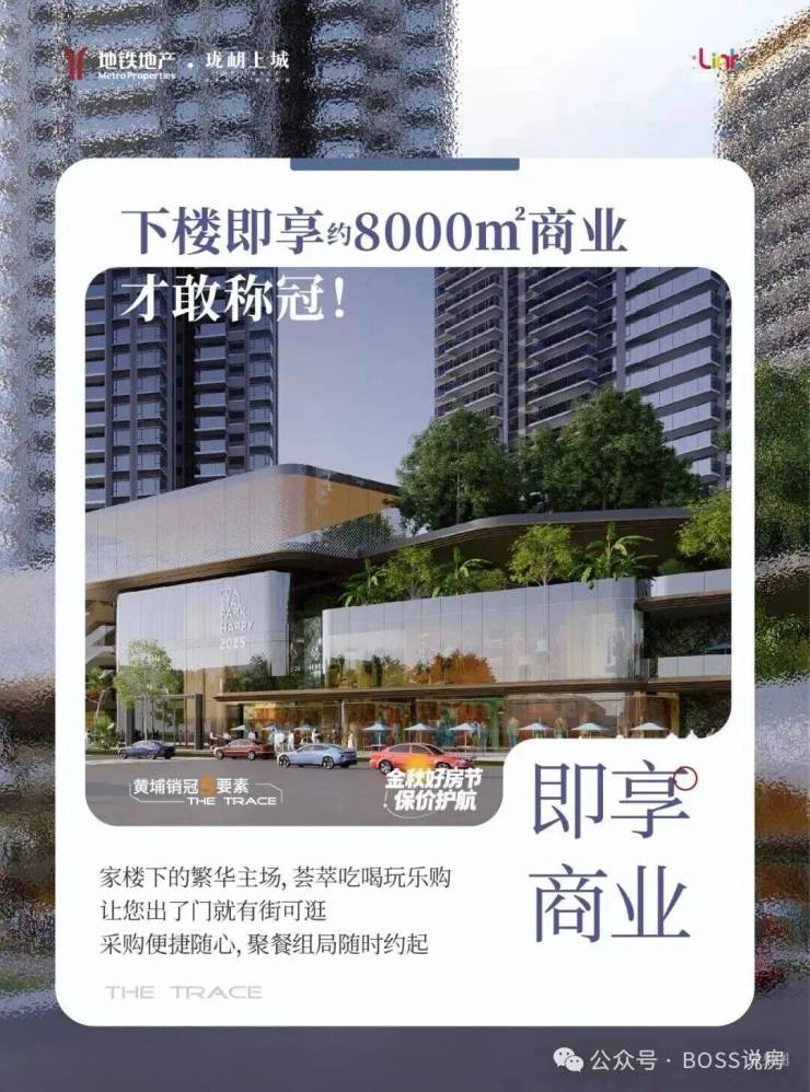 小区自带建面约 8000㎡商业街区,临近建面约 31 万㎡华润万象系商业综合体(建设中)