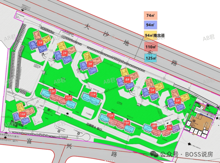 产品类型:建面约 74-94㎡高层三至四房、建面约 110-125㎡板式小洋房