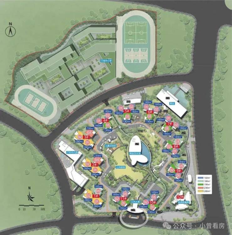 ⚜以居住、教育、公园用地为主,无褐色工业用地,整体容积率低至2,居住舒适度更高。