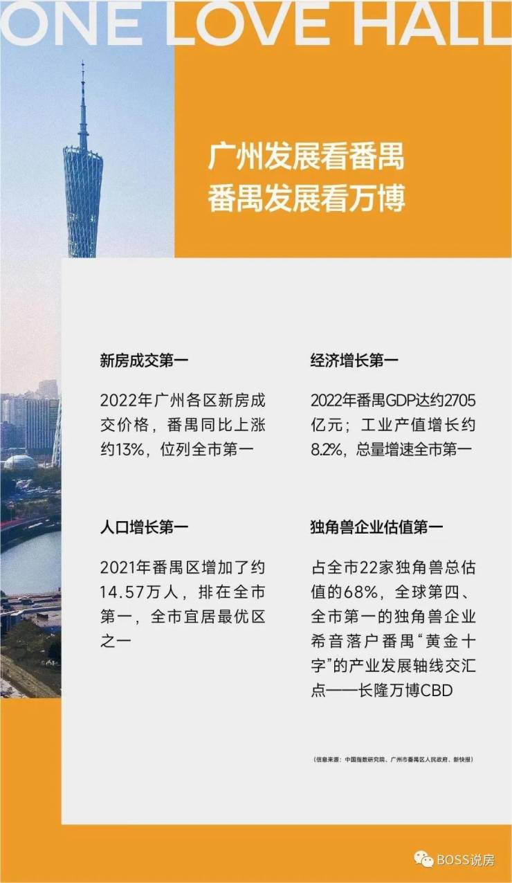 新房成交第一:根据中指院数据显示,2022年广州各区新房成交价格,番禺同比上涨约13%,位列全市第一,整个2022年番禺用销量和价格印证了“万博时代”,逐步实现自己所规划的粤港澳大湾区优质生活示范区。