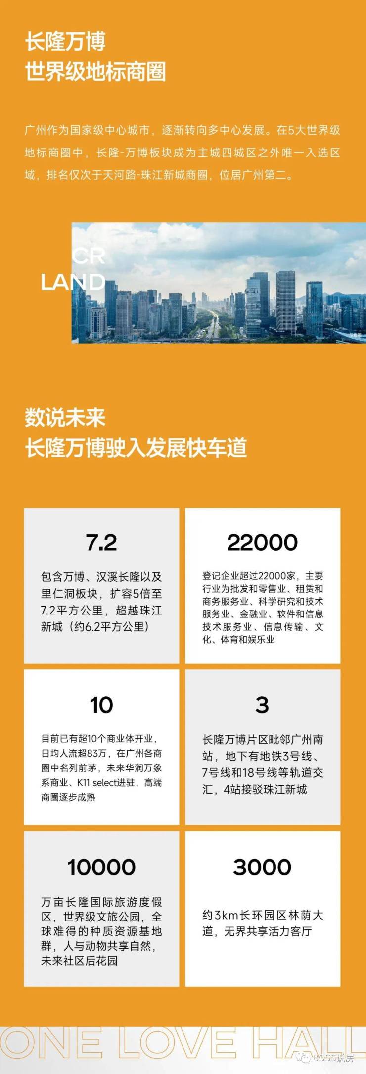 五大商圈规划:长隆-万博五大商圈排名第二,重要性仅次于天河路—珠江新城,经历12载发展,万博兑现程度远超其他商圈,汇聚39座甲级写字楼、10大型商业体、超约2.2万家企业。