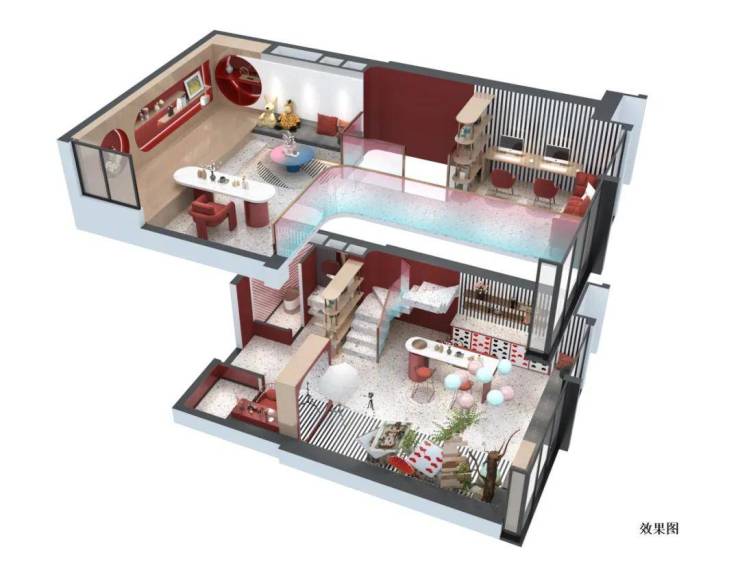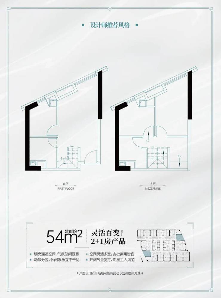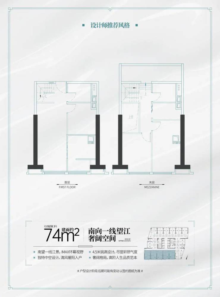 该户型提供南向宽阔江景,适合投资或自住。LOFT设计带来更高的空间利用率,且可明火,适合创意办公或小型商铺运营。
