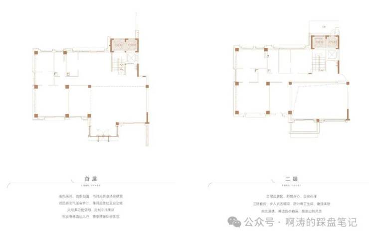 本次组团涵盖两叠与三叠两种墅居产品,首推共计五个户型。其中,两叠产品【上叠】面积约为392㎡。