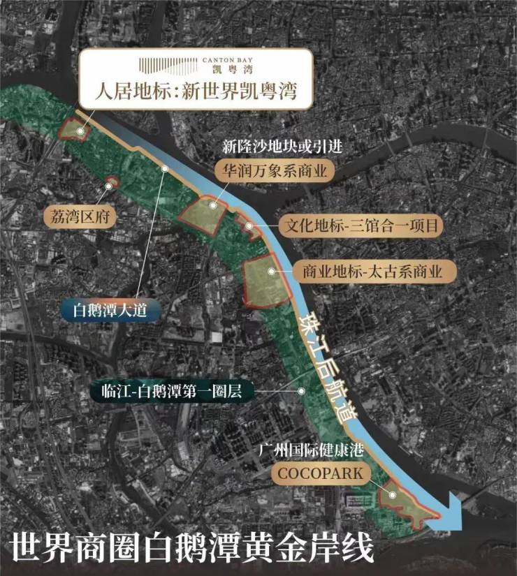 凯粤湾是新世界继二沙岛新世界别墅、珠江新城凯旋新世界后,在白鹅潭打造的全新一线临江大盘,这个地块也是广州最后一批的一线临江项目。