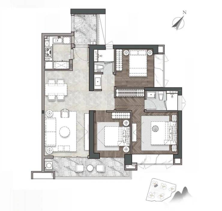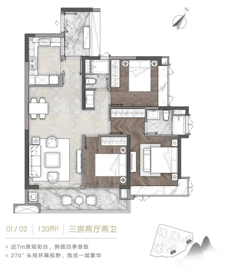 【A5-01/02】 建筑面积约120㎡三房两厅两卫