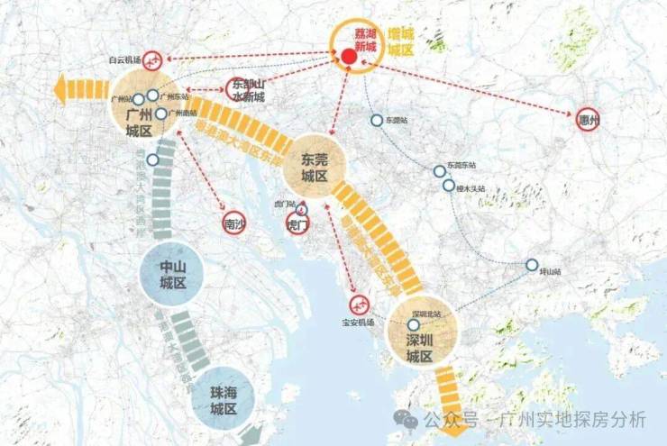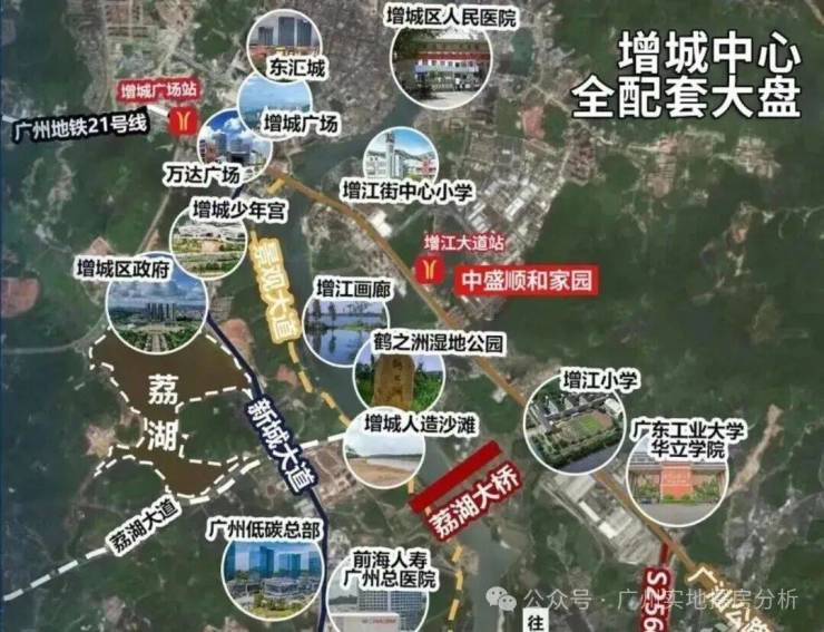 项目紧邻广汕公路,未来可通过广汕北绕线直通荔城老城区。地铁21号线东延段(规划中)设站附近,1站到增城广场站,区域路网逐步完善。